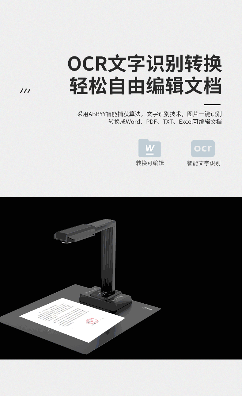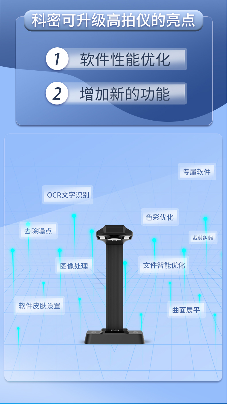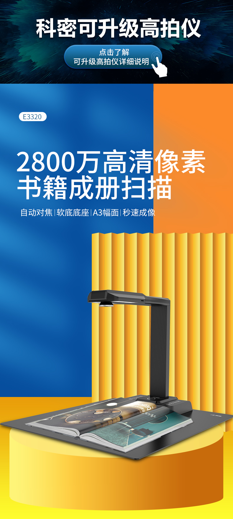 科密 E3320 高拍仪 2800万像素扫描仪 A3A4曲面展平OCR文件资料 HDMI 支持二次开发定制