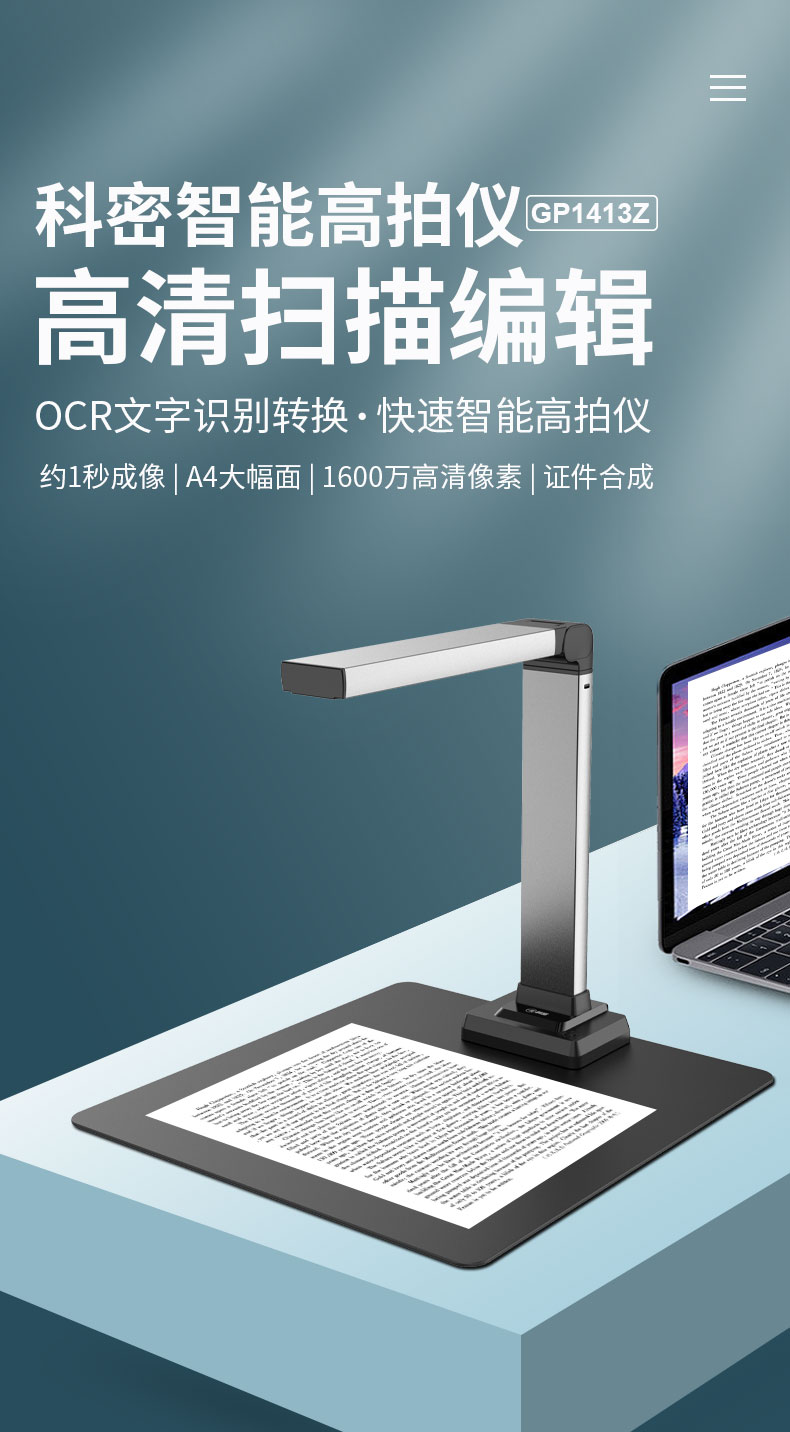 Comet科密GP1413Z高拍仪高清扫描仪连续快速扫描A4专业办公网课教学文件拍照书籍免拆扫描便携高拍仪一体机